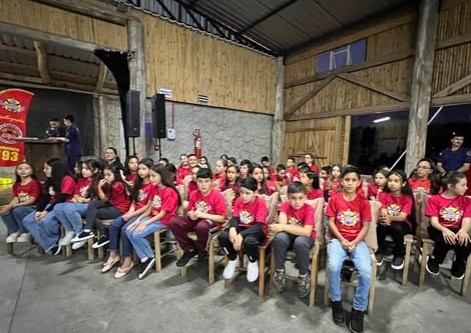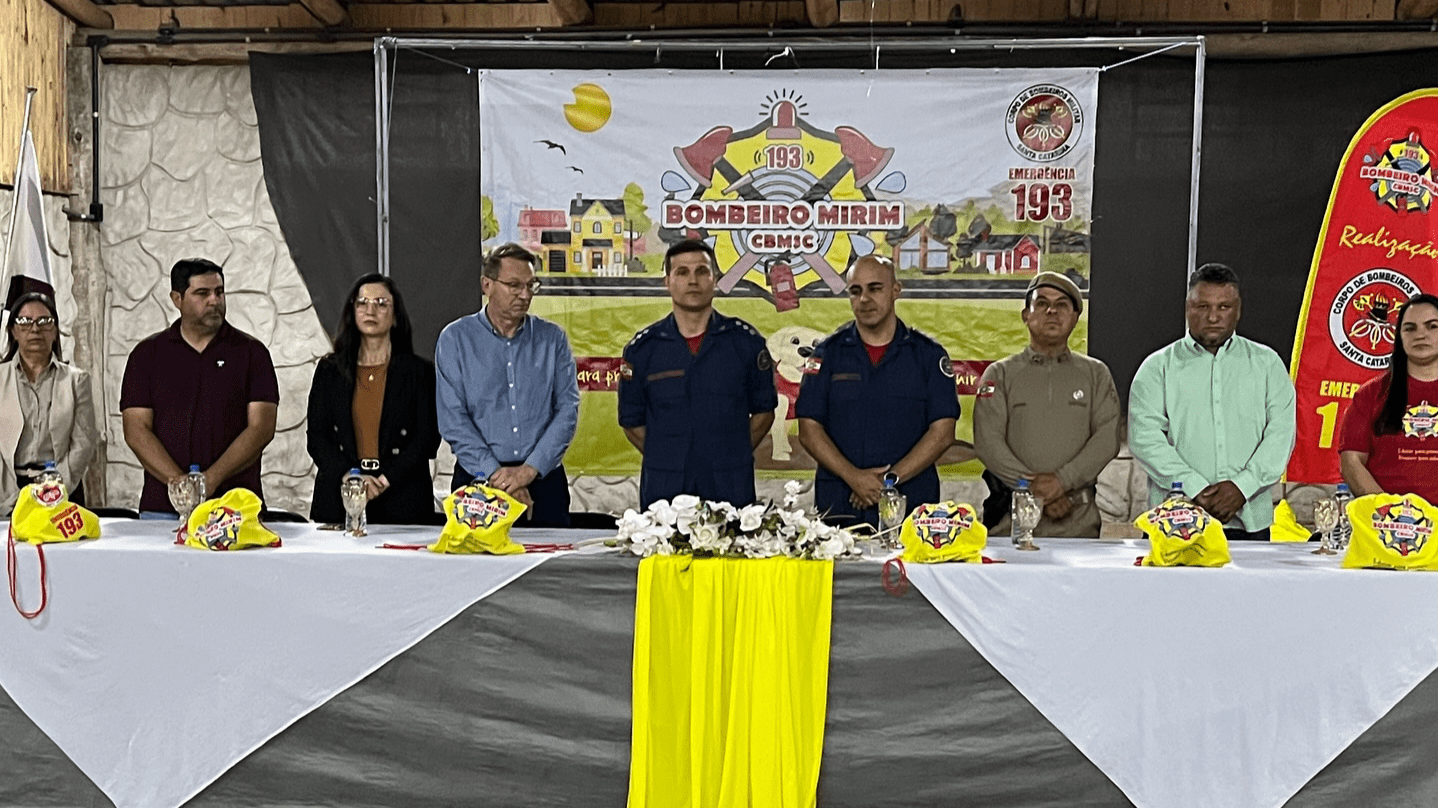 O destaque da noite ficou por conta do emocionante batismo dos novos bombeiros mirins, momento simbólico que emocionou familiares, equipe escolar e os próprios participantes, encerrando a solenidade com grande significado.