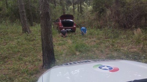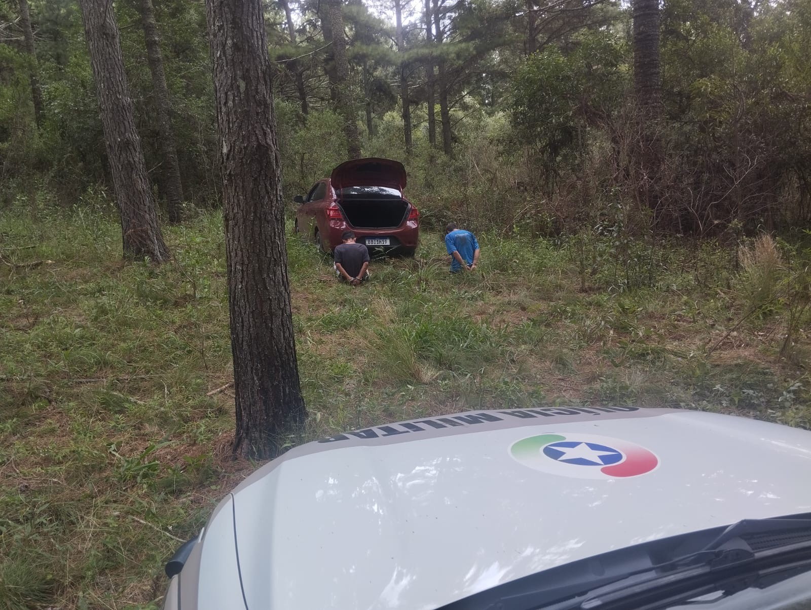Um dos homens admitiu estar comercializando drogas no local, informando valores praticados para a venda dos entorpecentes. A dupla também relatou ter adquirido um veículo furtado pouco antes da abordagem, pagando com pedras de crack. Após indicação dos suspeitos, os policiais localizaram o automóvel escondido em uma área de mata próxima a uma serraria do bairro.