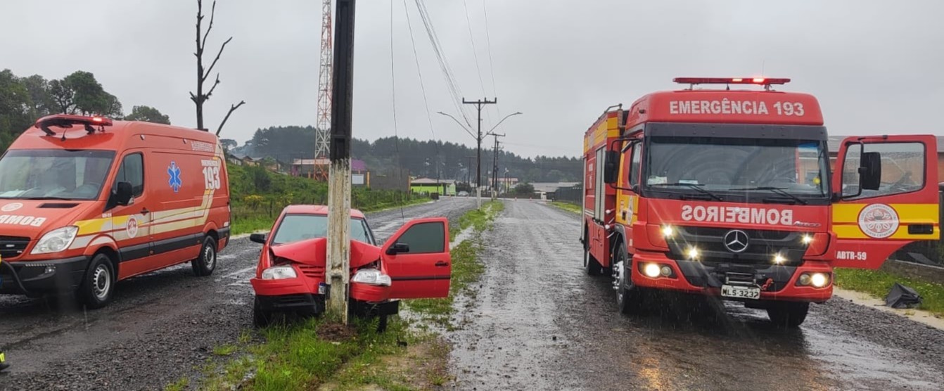 O Corpo de Bombeiros atendeu a um veículo que veio a colidir em um poste em Santa Cecília.